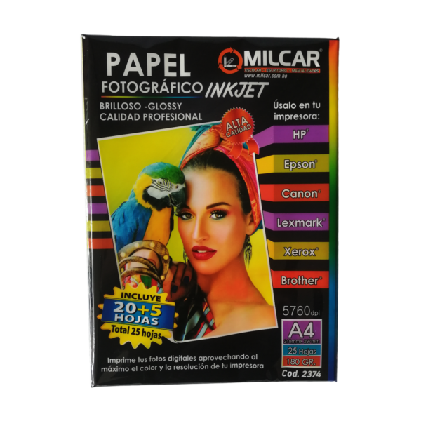El Papel Fotográfico Inkjet Brilloso está diseñado para ofrecer impresiones de alta calidad con colores vibrantes y detalles nítidos. Su acabado brillante resalta cada tonalidad, haciendo que tus fotos, gráficos o proyectos tengan un aspecto profesional y llamativo. Compatible con impresoras de tecnología inkjet, este papel garantiza una absorción uniforme de la tinta, evitando manchas y asegurando un secado rápido. Perfecto para álbumes fotográficos, presentaciones o material publicitario, es una opción confiable para quienes buscan resultados excepcionales.